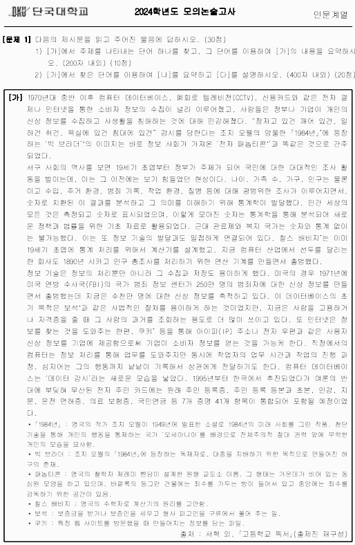 단국대 논술: 기출 · 모의논술